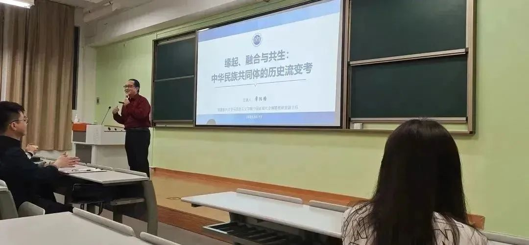 常陌塘老师以缘起、融合与共生:中华民族共同体的历史流变考为主题,从中华民族共同体的缘起、中华民族共同体意识及实践的历史流变、怎样铸牢中华民族共同体意识等几个方面,讲授了一堂生动的专题讲座。