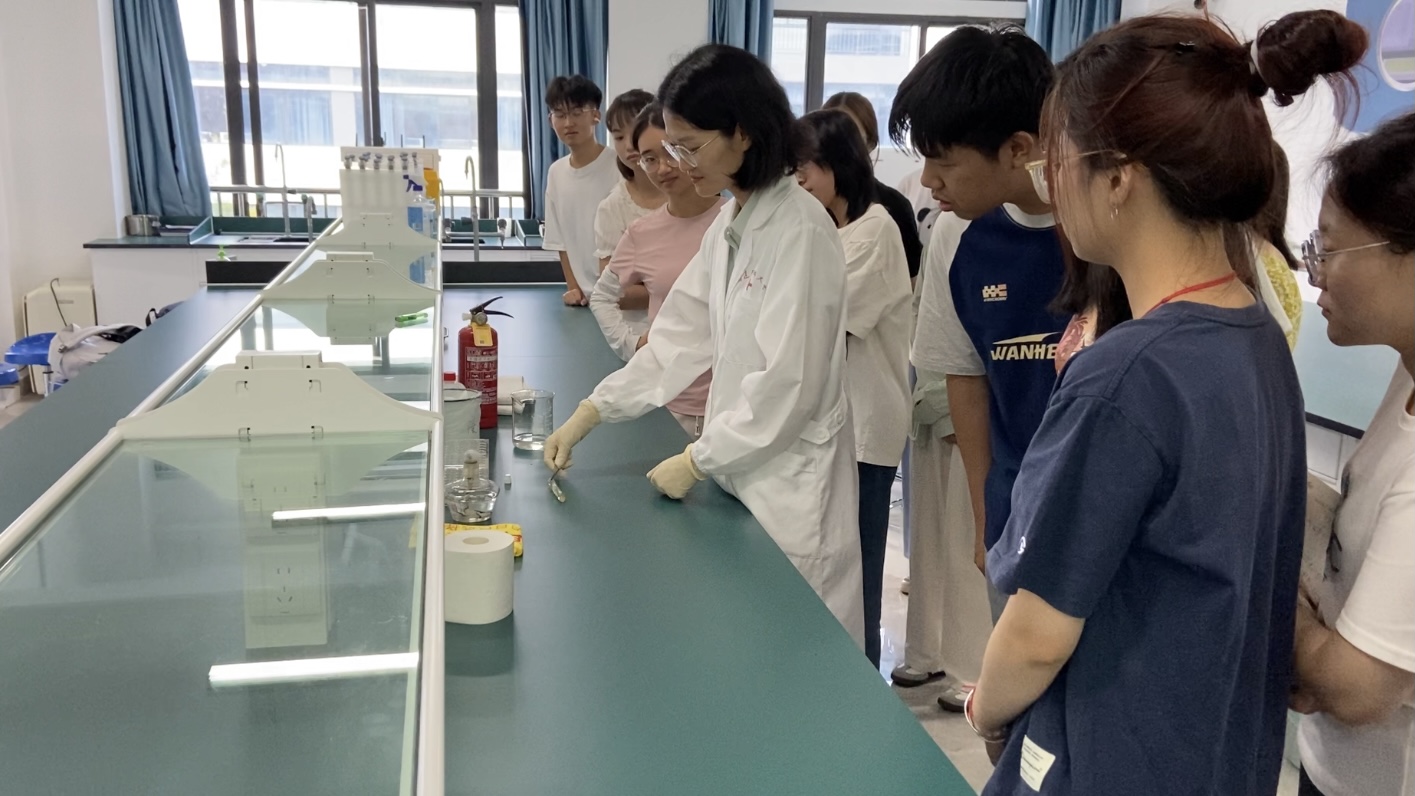 培训会结束后,吴玮、林艳凤和王融等3位老师指导学生实战演练了微生物菌种溢洒、酒精灯着火、盐酸碰洒、飞溅、掉落等应急处置。